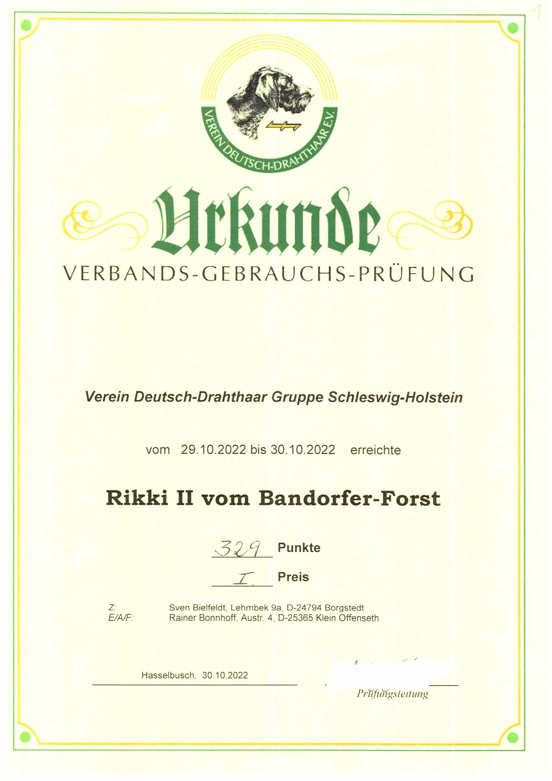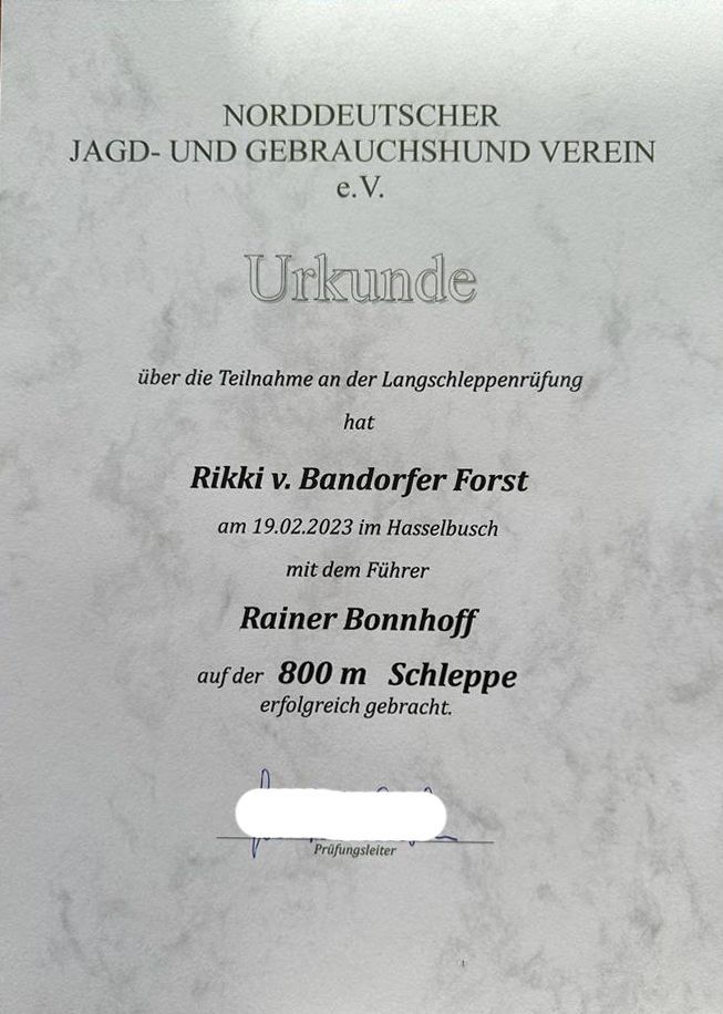 - VGP: I. Preis 329 Pkt. ÜF, Schweiß 4 h, Suchensieger